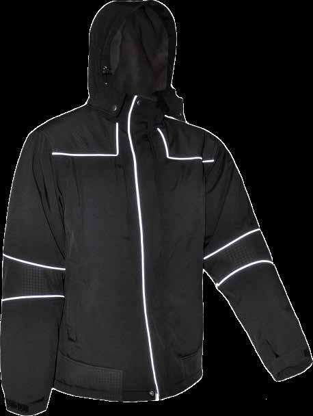 - Reguliuojamo dydžio nuse gamas kapišonas, lipukais reguliuojami rankogaliai. - Su atšvaitinėmis juoste lėmis.