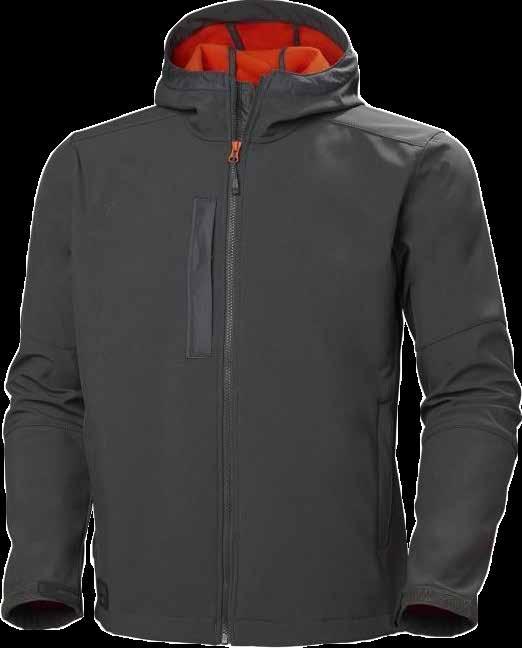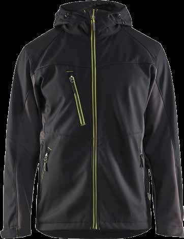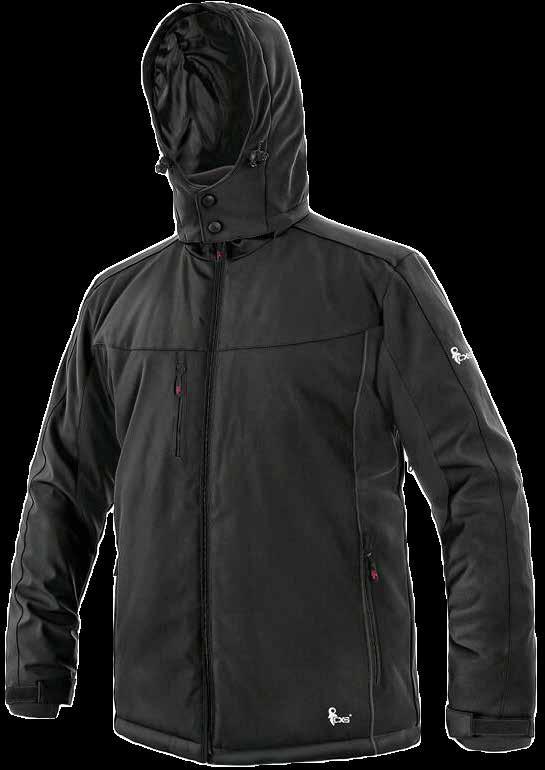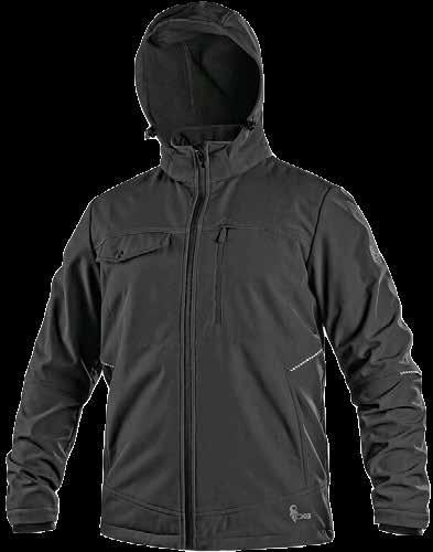 Praktiška ir stilinga vyriška softshell striukė su gaubtu vu, užsegama užtrauktuku su smakro apsauga.