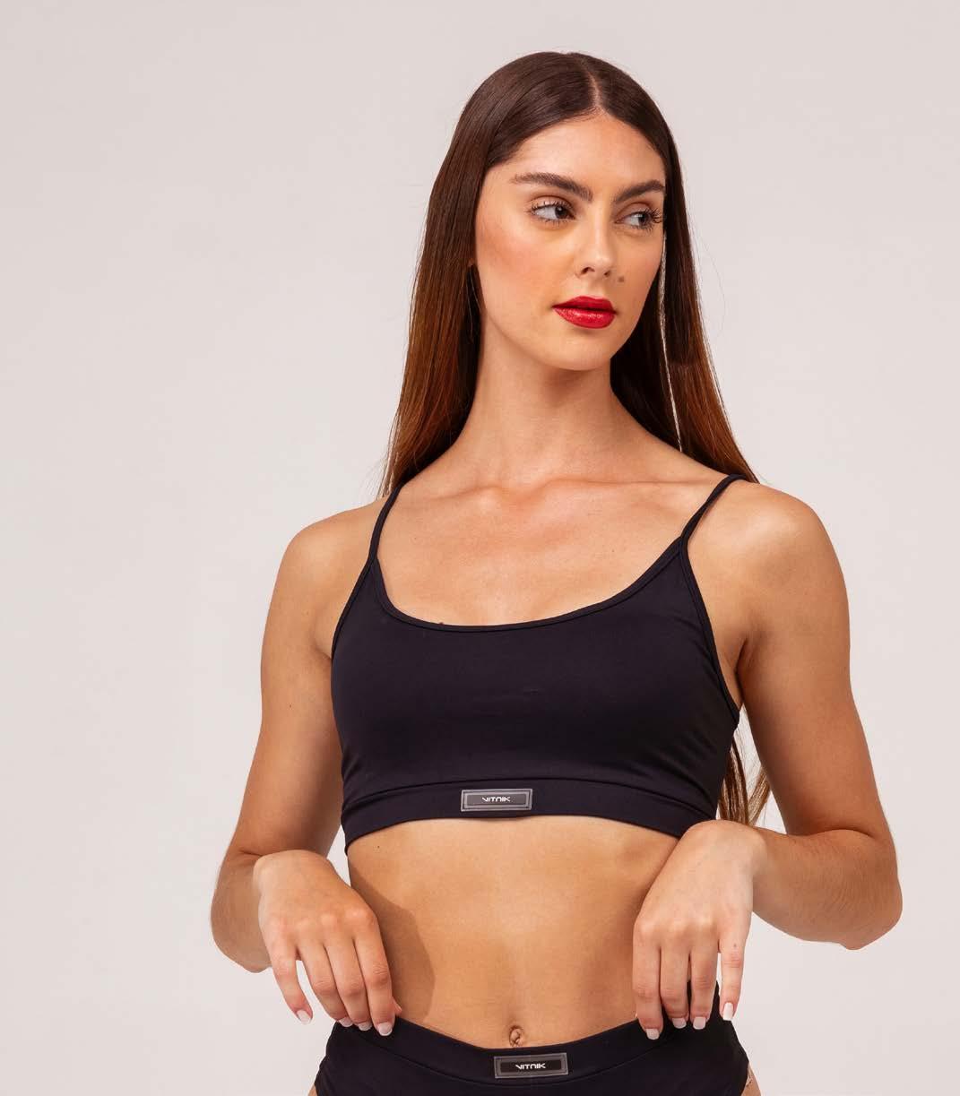 Top deportivo microfibra línea comfy con detalles de microtul al tono en espalda