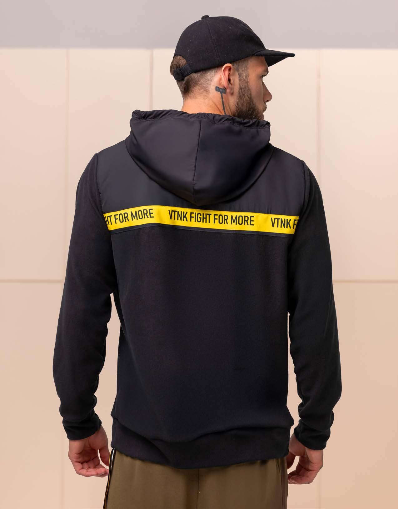 Buzo polar thermo fleece combinado con galón en mangas, detalles en ultrasoft y DTF en bolsillo canguro