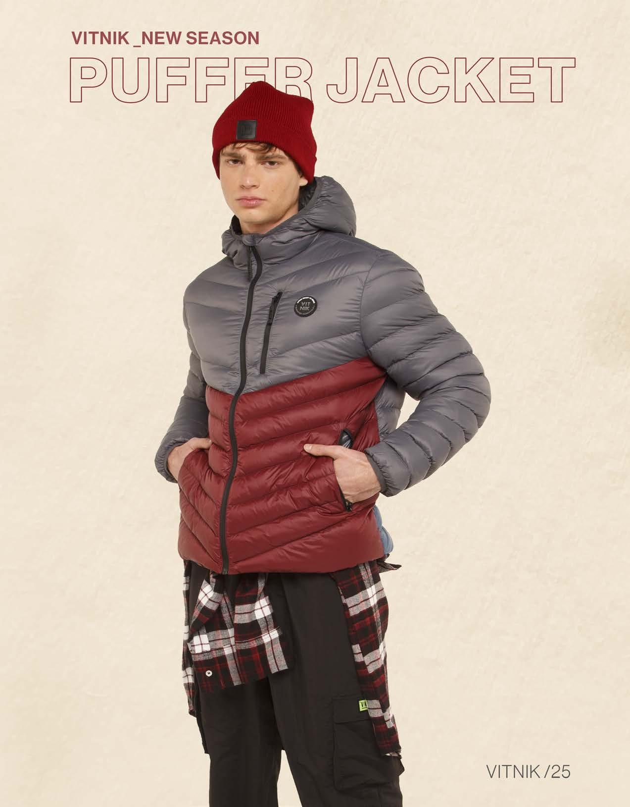 Campera puffer microfibra softshell combinada con cierre en laterales y estampa reflex
