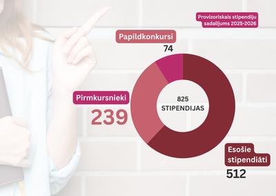 Padomes sēdē tika apstiprināts arī 2025 /2026 studiju gada darbības plāns Līgumi tiks pagarināti ar 512 esošajiem stipendiātiem Ja jaunieši būs iestājušies izvēlētajās augstskolās, tad plānojam piešķirt 239 stipendijas pirmo reizi. Plānotais stipendiju skaits - 825.