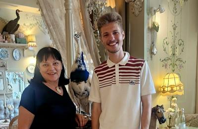Ziedotājas Līgas Ružas tikšanās ar stipendiātu Ģirtu Grigorjevu.