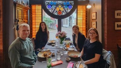 Ziedotājas Zaigas Alksnes-Phillips tikšanās ar bijušajiem stipendiātiem Mareku Marčuku, Indru Stiurenieci un esošo stipendiāti Agitu Strazdiņu.
