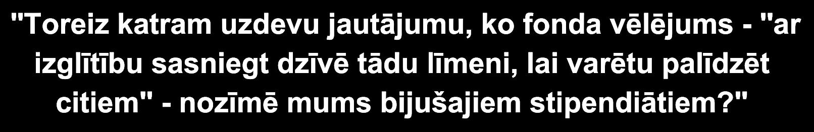 Ziedotāji stipendiātiem ir snieguši ne tikai materiālo palīdzību - daudzi no viņiem bieži tikušies ar saviem studentiem un kopā priecājušies par sasniegumiem. Tādēļ no sirds sveicam ziedotājus un absolventus ar kopīgi paveikto!