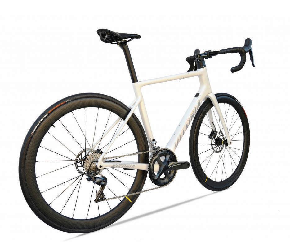 La Vitoria Ultimate SK es una bicicleta de carretera completa, con una ligera geometría aerodinámica pero ideal para rutas de gran fondo, rápida en subidas y terreno llano. Destaca por su geometría cómoda, que hace disfrutar al ciclista de una posición relajada. El cuadro y la horquilla están fabricados a base de fibras de carbono de alto módulo T800. La tija, también de carbono aporta ligereza y una estética más aerodinámica por su forma.