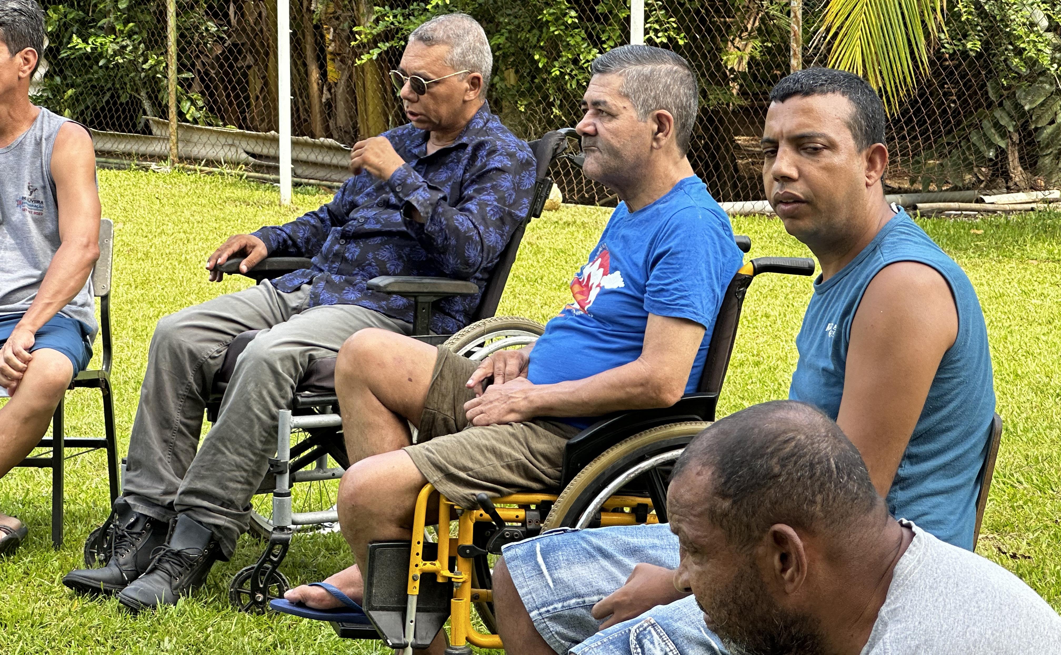 Ao chegarmos na Comunidade, em uma manhã de quinta-feira, logo visualizamos as atividades acontecendo. Um barbeiro voluntário cuidando do visual dos internos, atendimento médico checando a pressão, cuidadoras conduzindo idosos em caminhada e atividade terapêutica em grupo. Foi, então, que tornamos o cenário ainda mais especial enquanto descarregávamos caixas e mais caixas de doações, proporcionadas pelos Parceiros