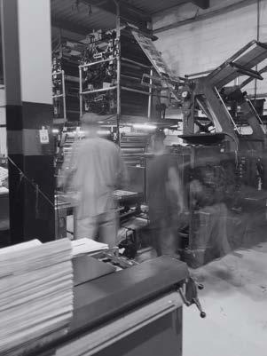 O jornal utiliza o estilo de impressão offset, onde o conteúdo é gravado em uma placa de metal.
