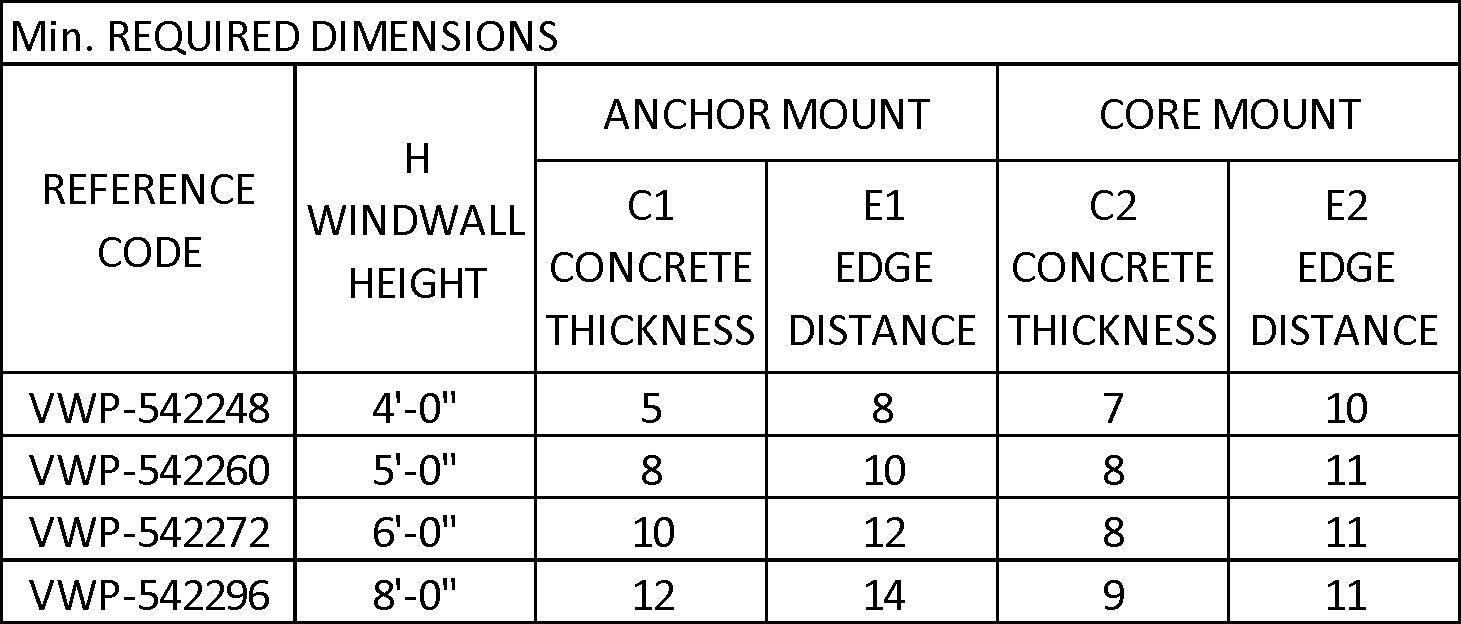 2 1/4”x5 7/16” Square post @ 4’-0” max. O.C. 4’-0”, 6’-0” & 8’-0” Height Alum. Windwall. Anchored, Cored or Welded mount.