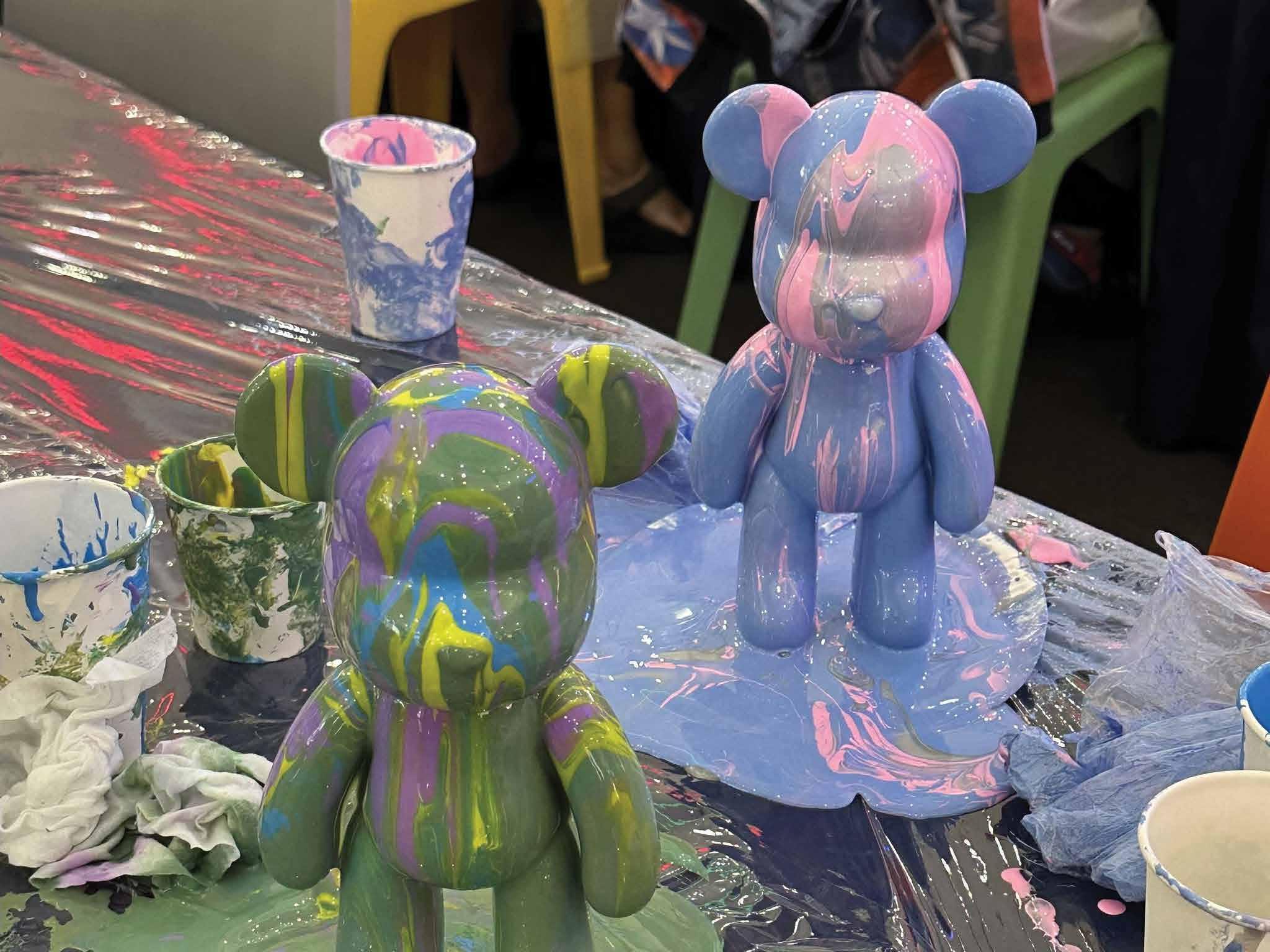 Attendees had the opportunity to customize their own adorable stuffed bears using fluid art techniques.