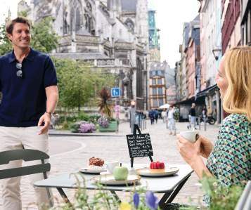 Open the curtains of your cabin and greet Rouen, the capital of Normandy. After a hearty breakfast, you can get to know the city and its highlights on a morning jog. If you prefer something more relaxed, you can visit the famous Rouen Cathedral on an extensive city tour, or explore sights such as the historic old town or the numerous museums on your own. The ship departs at midday and you sail along the breathtaking landscape towards the Atlantic. Enjoy your time on board, treat yourself to a massage or a glass of champagne on the sun deck. Sports enthusiasts can use the stop in Duclair to explore the picturesque landscape by bicycle and join the ship again in Caudebec