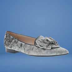 Für die Tea Time bei Kerzenlicht: Neben einer großen Auswahl an Tee fi ndet man in der süßen kleinen Sconery im Viscardihof auch dieses hübsche Duftkerzen-Set von Spode (41,20 €). 3 Peter Kaiser Auch fl ache Schuhe können festlich sein: komfortable Designloafer aus grauem Samt mit modischer Schleife (160 €).