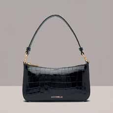 5 Coccinelle Genug Platz für Portemonnaie, Handy, Schlüssel, Lippenstift: Baguette-Tasche „Bonheur“ aus Leder mit KrokoPrägung. Mit abnehmbarem Schulterriemen (210 €).