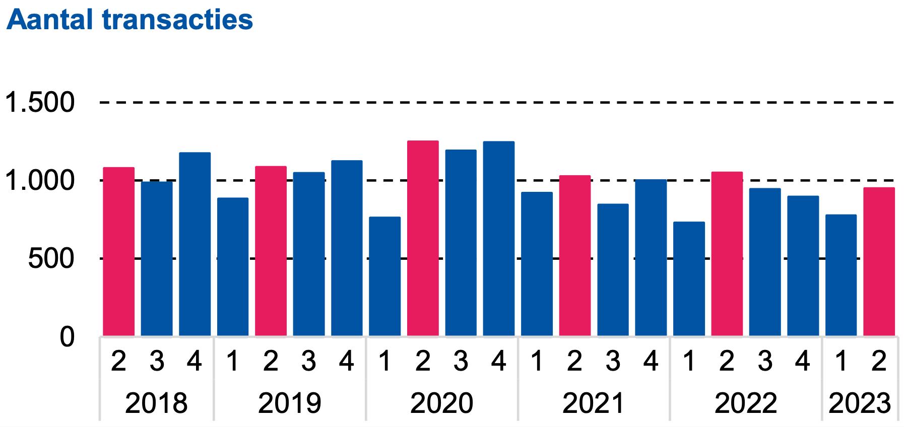 transactieprijs in Q2 2023 was € 468.000. Dit is € 27.000 euro minder dan tijdens de piek in Q3 2022.