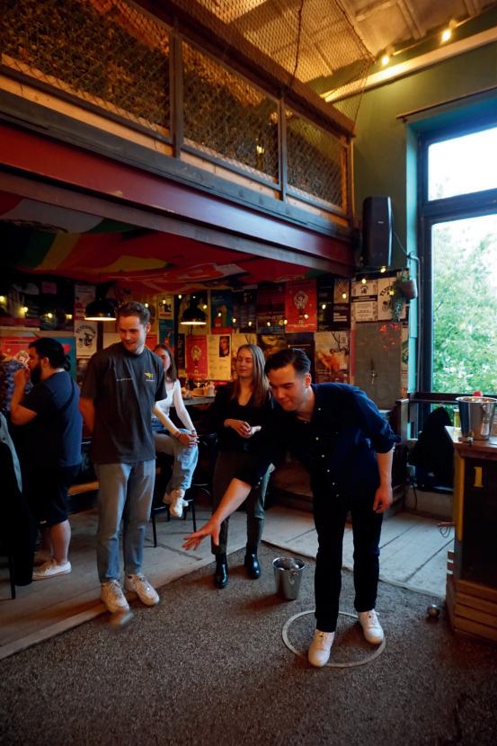 Vaak in een café, maar ook op de faculteit direct na college met een kar vol drank en chips. En jaarlijks in juni/juli vond een hele grote BBQ plaats in Haarlem op een vwo-school waarvan ik voorzitterwas.