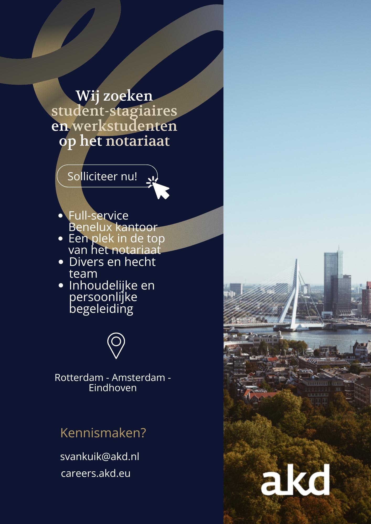 Het beste advies dat ik heb voor studenten uit dezetijd,isdatmenvooraldetijdmoetnemenom zich breed te oriënteren op de toekomstige loopbaan.Nietalleenkanhetnotariaatopzoveel