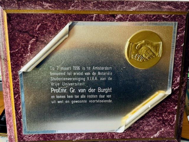 Certificaat bij de benoeming tot erelid van prof. mr. Gr. van der Burght.
