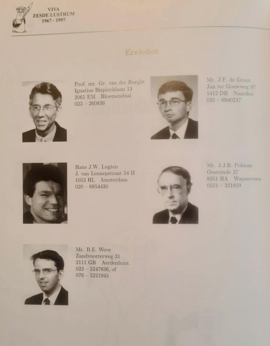Foto uit een oude almanak van 1997 met alle ereleden.
