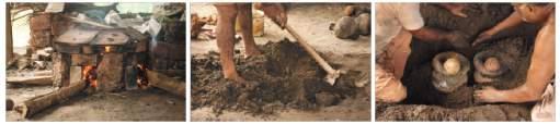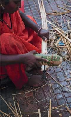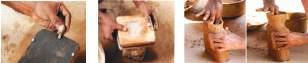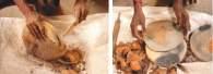 The skin of cow, buffalo and female goat find use in making of a Mridangam. The skin collected is dipped in water for 2 days, removed of any hair and is left open in the brightsun to dry. Nails are used to fix the stretched parchment firm on the ground to air out.