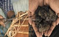 8) Once the metal is cooled, it is broken with hammer and then metal wires are seen.