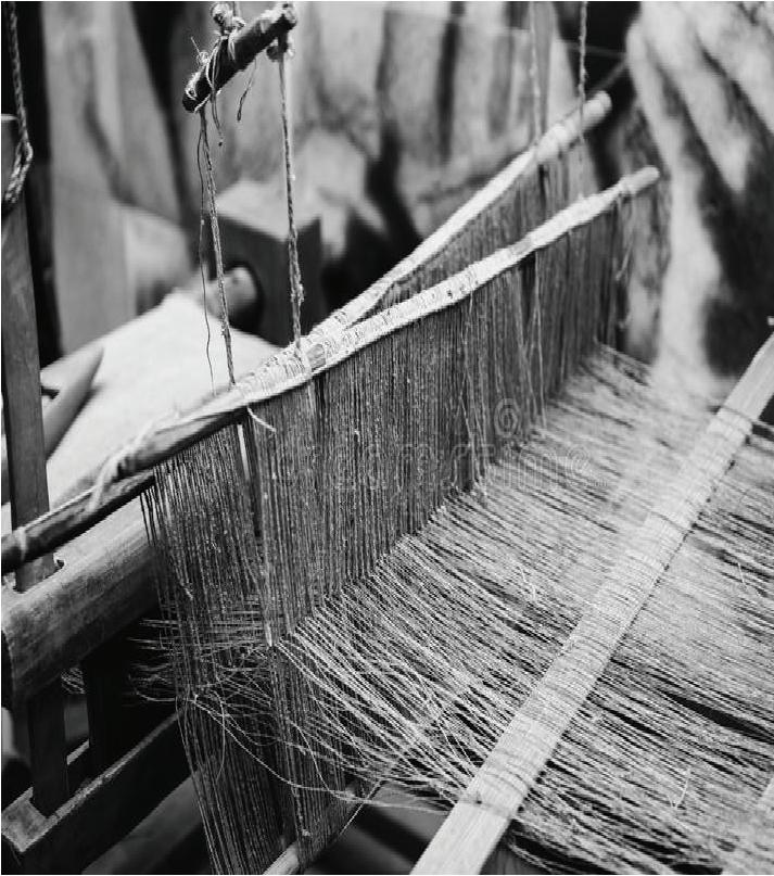 By the passing of the fly shuttle the weaving takes place and each weaver weaves.