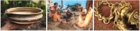 Kerala is one of the finest places to find exclusive arts and handicrafts. Metal craft is the pride of gods own country, Kerala. Bell metal that is Brass casting is one of the oldest traditional art forms practiced still now in Kerala. Brass metal is been acquired in various metal art forms because of its gold like appearances, lustrous features and its combination of high workability with hand tools and durability. Brass metal is also used in musical instruments like saxophone, harmonica, trumpet and many more because of its acoustic property. Idols, exquisite variety of traditional lamps, arches and pedestals for the idols and many decoratives for the temples are made out of brass. Multi-layered lamps, the Greek lamp (Changalavatta), the Archana lamp, the Arati Dipa , the Aranmula metal mirror are few fame products made out of brass metal in Kerala. Even now few artisans from Trivandrum practices the Koftagari style of work in figures of deities, landscapes, floral designs and fancy articles.