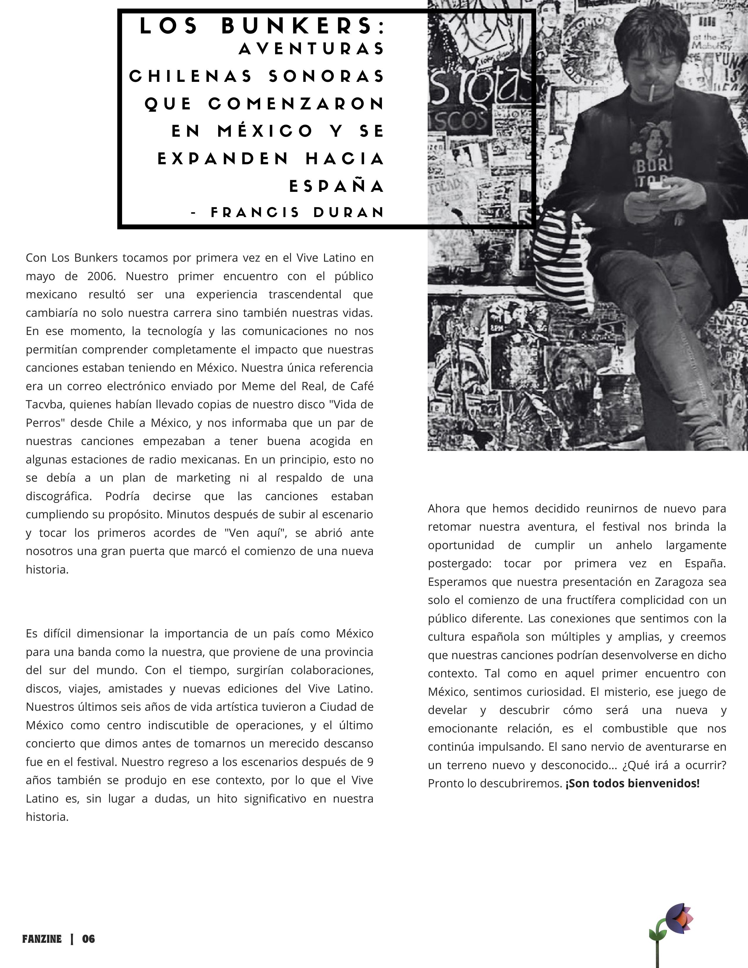 El esperado festival Vive Latino está a tan solo 100 días de distancia y queremos compartir con ustedes una emocionante noticia. Estamos de regreso con el relanzamiento del Fanzine, una publicación digital al estilo de la vieja escuela que estará contándoles todo lo que sucederá en el festival. Desde las bandas más destacadas hasta los momentos más vibrantes, el fanzine será su guía completa para vivir la experiencia del Vive Latino al máximo. ¡Estamos encantados de volver y emocionados por contar los días que nos separan de reencontrarnos en Zaragoza! Prepárense para sumergirse en un mundo de música, energía y emociones inolvidables. ¡Nos vemos pronto en el Vive Latino!