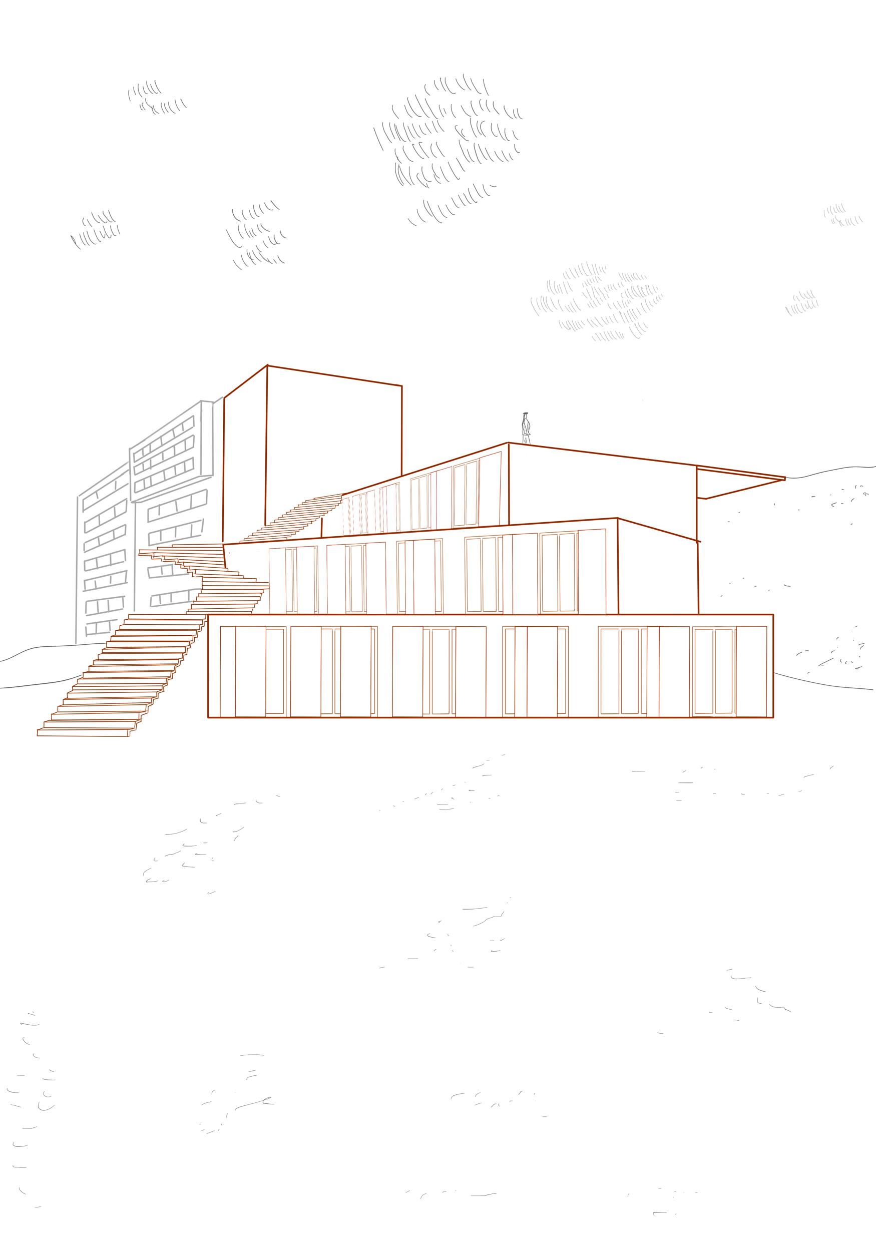 The library in Rio Seco is more than just a place to exchange knowledge; it is the heart of our architectural vision The building is designed to create a harmonious connection with the observation tower which is an outstanding spatial feature It provides an urban connection to Cristo Rei