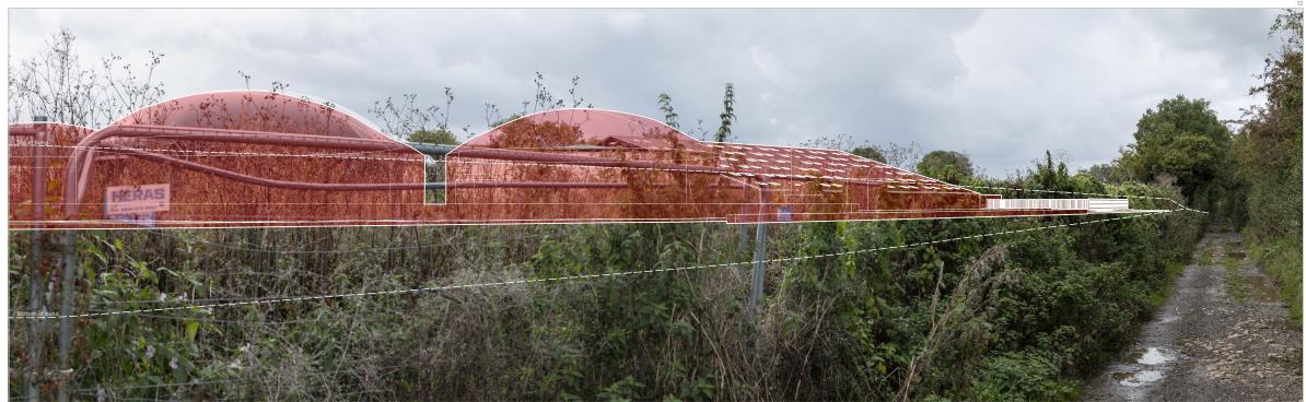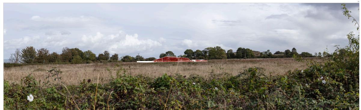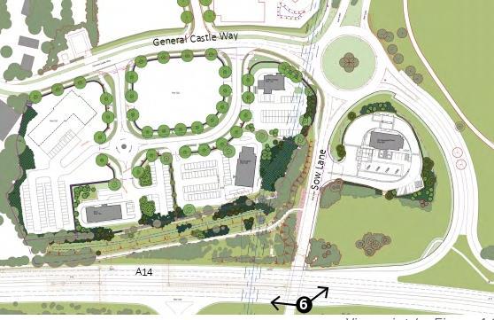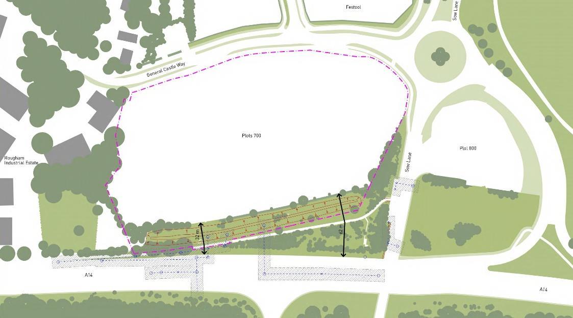The visualisation study illustrates visual permeability of the design from A14 to the frontage of roadside plots.