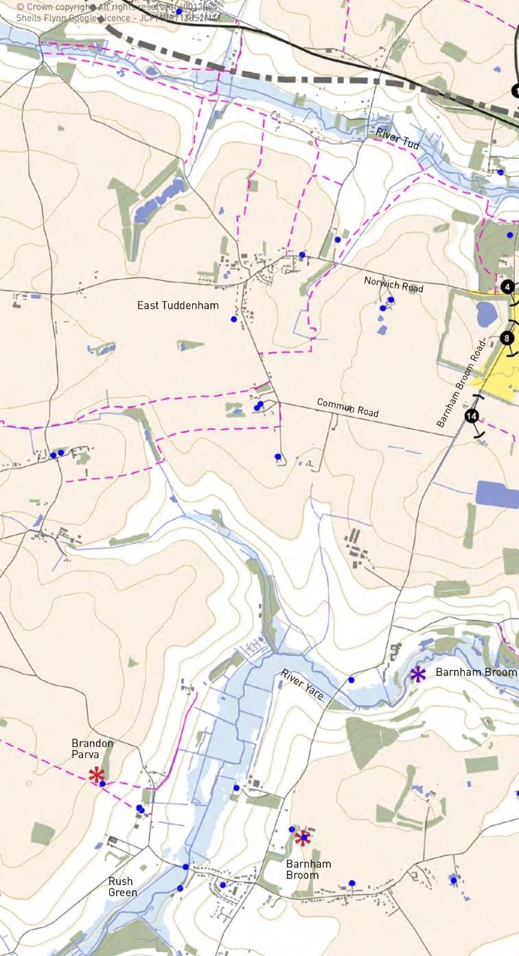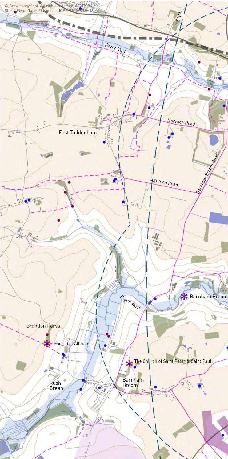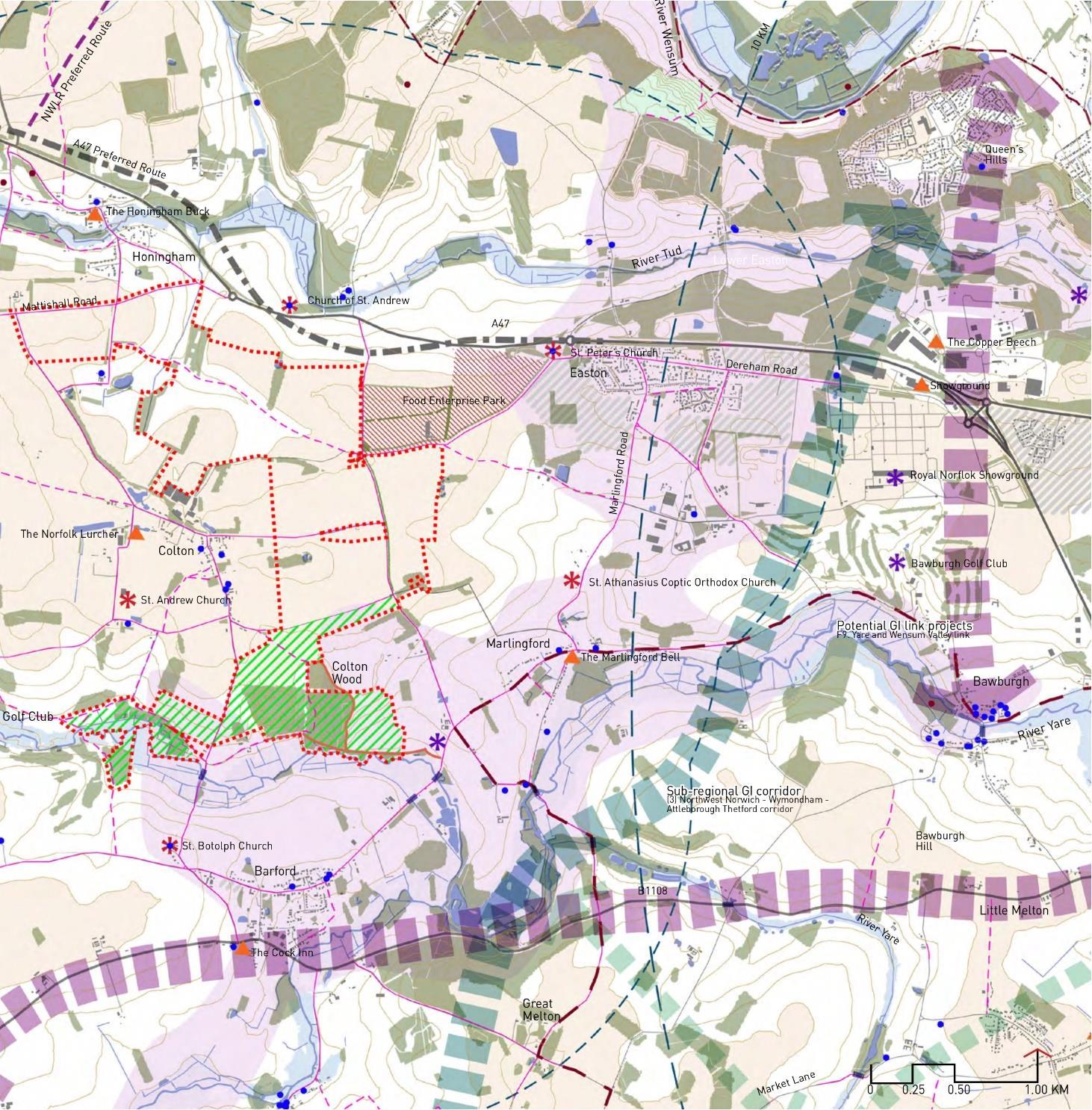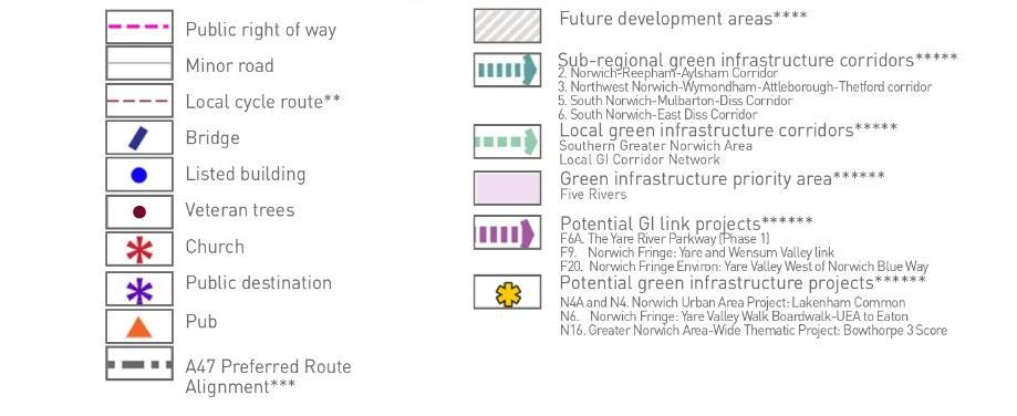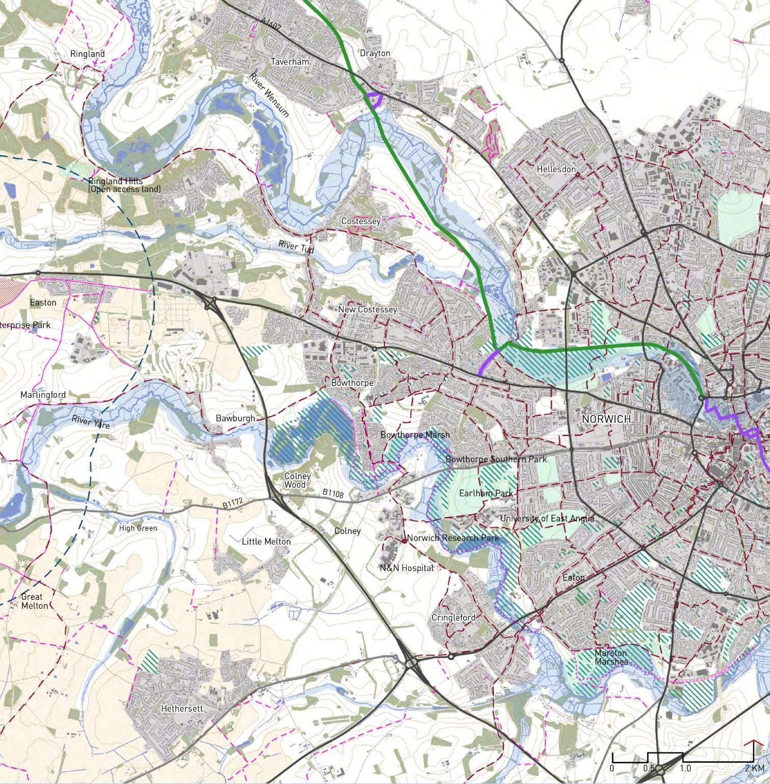 The main strategic GI corridors are along the river valleys of the Rivery Yare, the River Tud, and the River Wensum – parts of Five Rivers. The floodplains of these rivers contains a sequence of core habitats which are linked as wetland habitat enhancement and creation area.