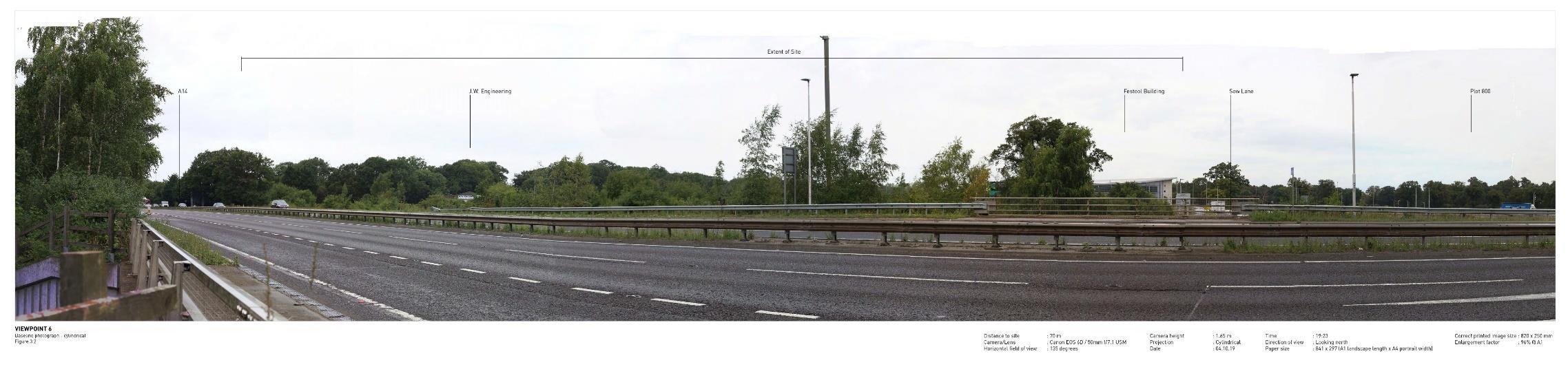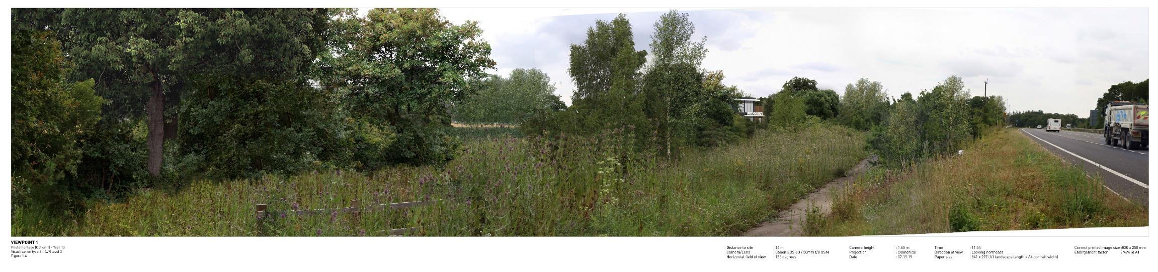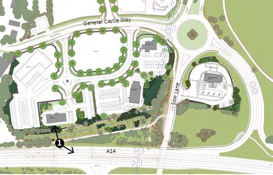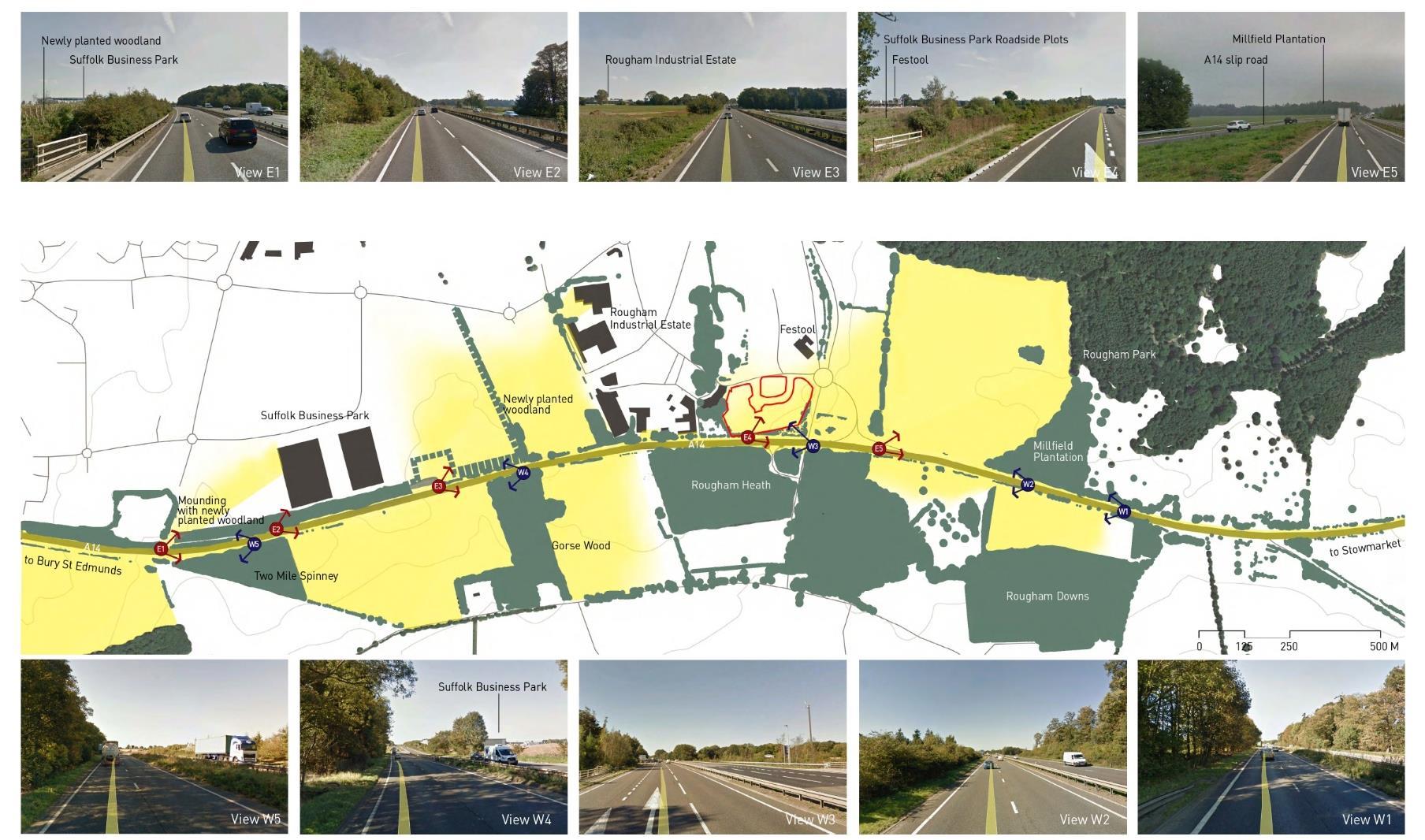 The visualisation study illustrates visual permeability from A14 to the frontage of roadside plots.