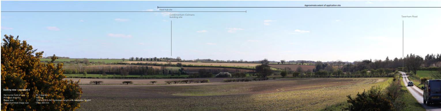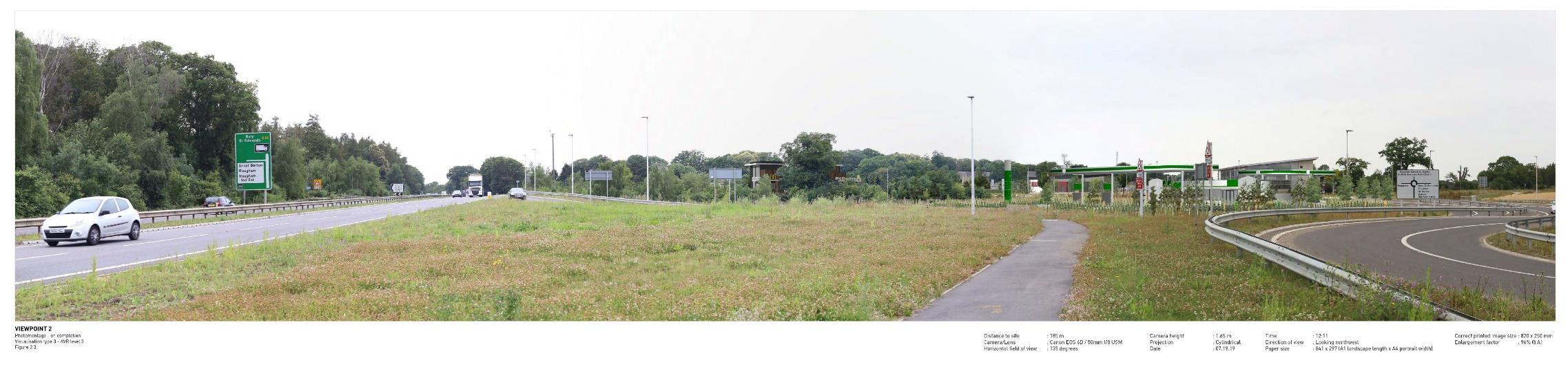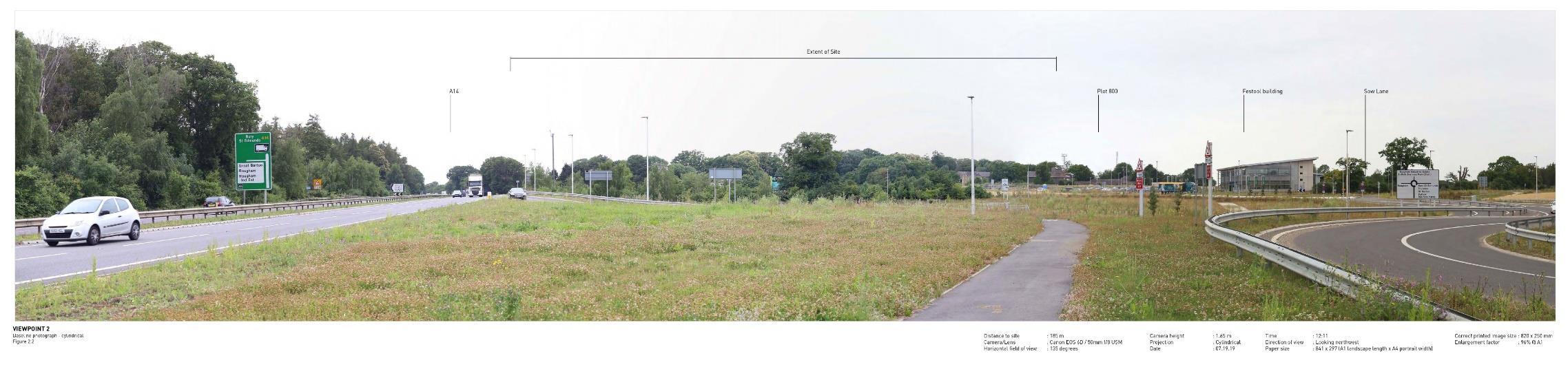 The visualisation study illustrates visual permeability from A14 to the frontage of roadside plots.