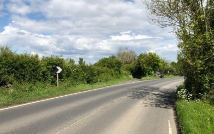 The junction between Charlton Road and public right of way looking south-east towards the site boundary