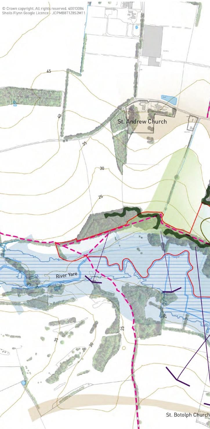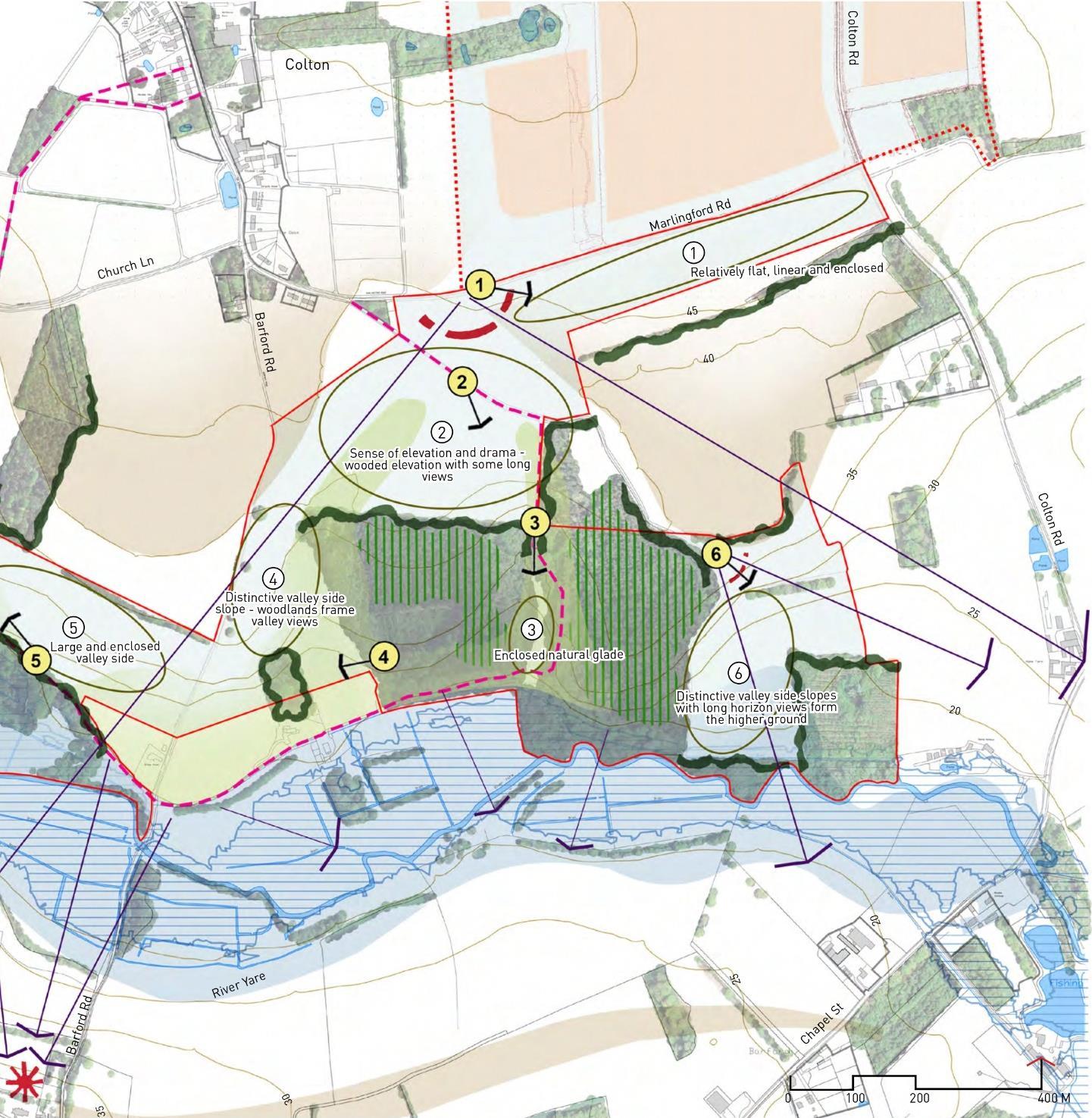 At the southern of the site, there is a chance to propose this area as a country park that is publicly accessible. The site situated next to River Yare which has combination of landscape features. The valley topography is sloping down to the river adjacent to River Yare flood meadow and marshes