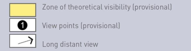 Visual assessment shows the zone of theoretical visibility (ZTV) for the site. There are 27 selected viewpoints to define the area within which receptors might reasonably expect to be visually affected in the future site development.