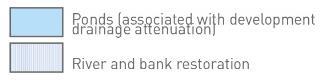 An existing healthy ecosystem and water management along the River Chew floodplain shows opportunities for north-south biodiversity corridors. An interpreted green corridors around Wandsyke is also strengthened the wildlife of the site development. The GI strategy takes into account the importance of the area Horseshoe Bats to protect its habitat and flight networks