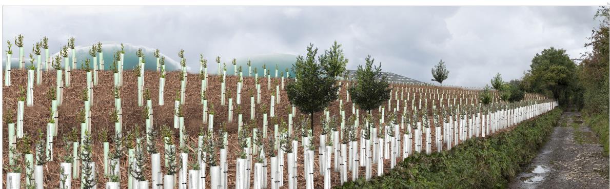 • Year 5: the visual visibility to site is reduced since the woodlands is growing