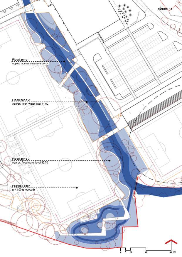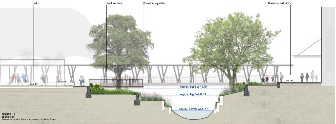 On both banks, new Riverside walks are to be created elevated above the maximum flood level.