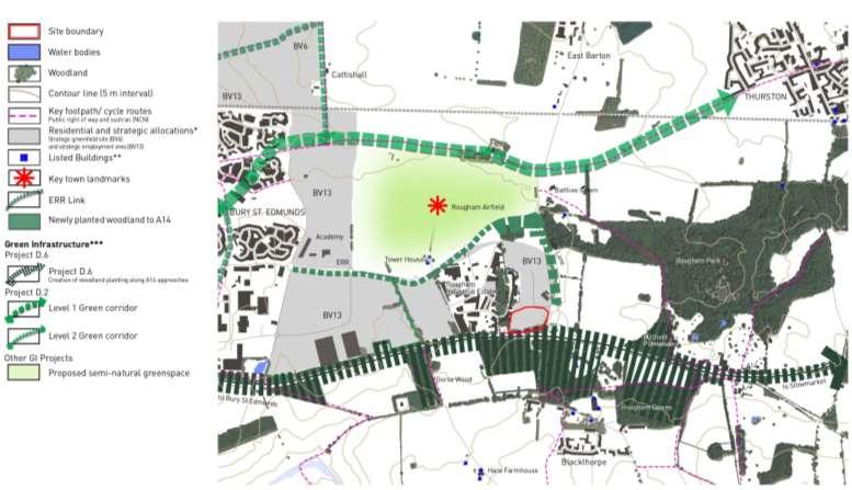 An extensive analysis was undertaken, weaving together elements including existing development plan, potential view corridors, structural landscape opportunities, and the assessment of current green infrastructure. This thorough investigation aimed to identify key features and strategic opportunities within the site to inform a strategy that promotes sustainability and enhances the overall landscape quality of Suffolk Business Park.