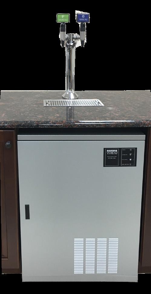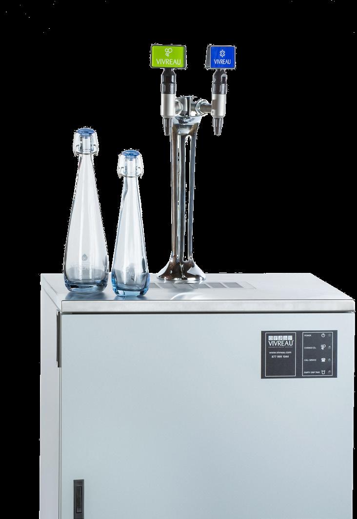 Vivreau High Volume Water Bottling System, dual tap, undercounter cabinet, self-contained ice bank refrigeration system, advanced micro-filtered, chilled still and sparkling water, twin tap with removable nozzles & stainless steel drip tray, accommodates up to 20