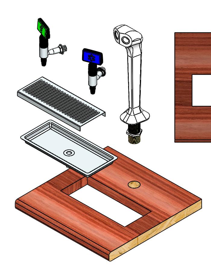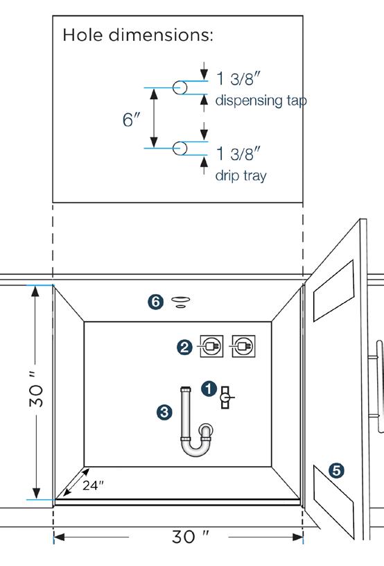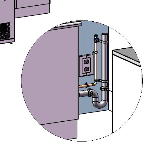 Customer needs to supply a rigid vertical pipe that drains to a properly trapped drain according to local codes. The vertical pipe for the drip tray drain must be located inside the installation cabinet and must be at least 1 ¼″ ID.