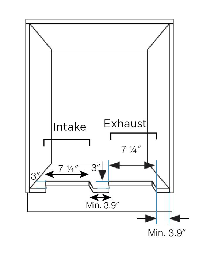 Please note, all vents must open to fresh air in a free and unobstructed area and 24 square inches of opening is required for each of the top and bottom vents (48 square inches in total).