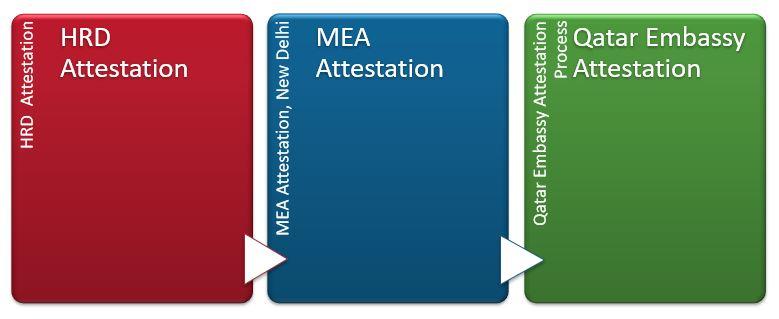 GenerallywehavetwoprocedurestogetyourdocumentauthenticatedfromQatarEmbassy.In firstprocesswehavetostartwiththeStateAuthentication(HRD/Home)followedbyMinistryof ExternalAffairs(MEA).AfterMEAwemustcompletetheprocesswithQatarEmbassy attestation.SecondprocedurestartswithNotarypublicattestationfollowedbySubDivisional Magistrate(SDM),afterSDMministryofExternalaffairsfollowedbyQatarEmbassyattestation. BothprocessesarevalidforQatarEmbassyhoweverthestateauthenticationwilltakemoretime basedonthestateofissuance.BothprocessesarevalidforEducational/Non-Educational documents.