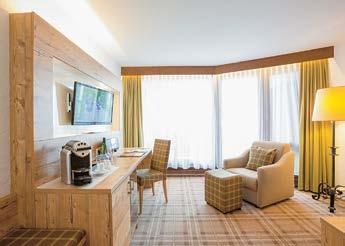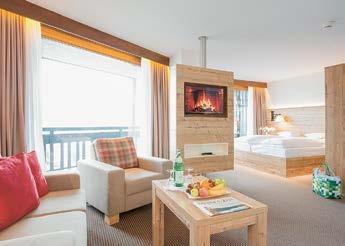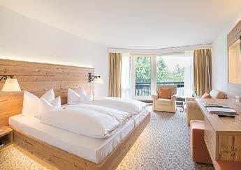 Gemütliche Suiten, ab 38 m², Schlaf- und sepa rater Wohnraum, Bad mit getrenntem WC, Balkon oder Terrasse. Ausgestattet mit Schlafcouch für zusätzlich 2 Personen im Wohnraum, Schreibtisch sowie je einem Fern sehgerät im Schlaf- und Wohnraum, Minibar. Standardbelegung 2 Personen Waldseite pro Zimmer/ÜF ab € 335,–
