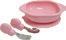 這套設計周到的餐具組包 含了孩子開心用餐所需的 一切。實用的碗盤、大小 適中的杯子和符合人體工 學的叉匙組,碗盤和杯子 採用rPET材料製成。叉 匙組為304不鏽鋼和食品 級矽膠製成,rPET是將 塑料重新利用,使其成為 耐用且具有環保意識的餐 具。