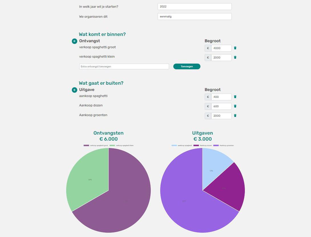 • Geeft inzicht in de te maken kosten en de opbrengsten.