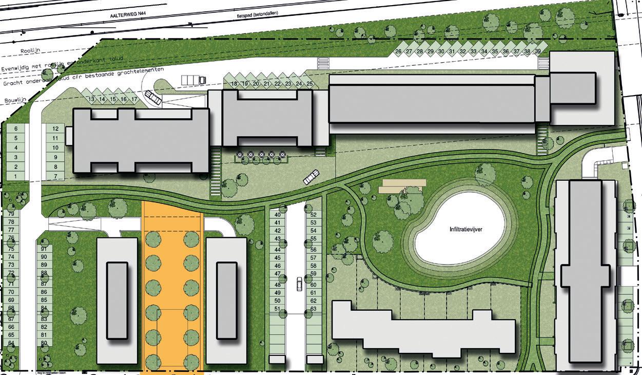 • 50 appartementen en 4 handelsgelijkvloers en 210 garages