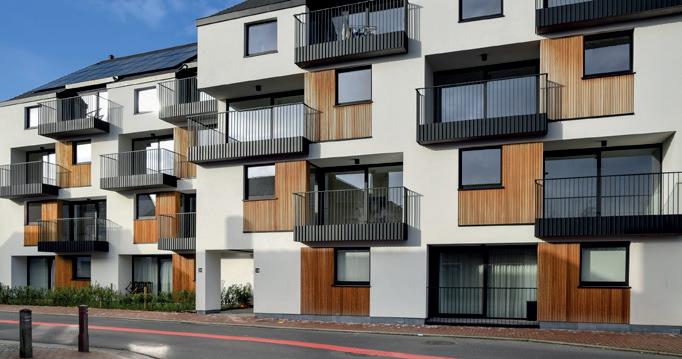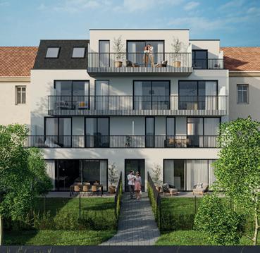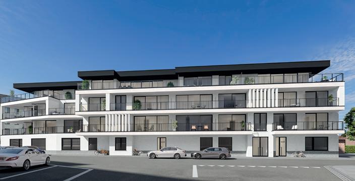 • 24 appartementen, 4 handelsgelijkvloers en garages