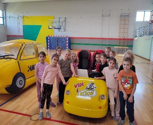 Učenici su u radionici aktivno sudjelovali te naučili kako sigurno prelaziti ulicu, kretati se nogostupom i voziti se u automobilu!
