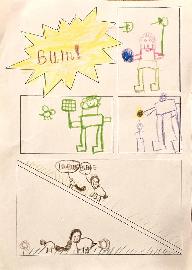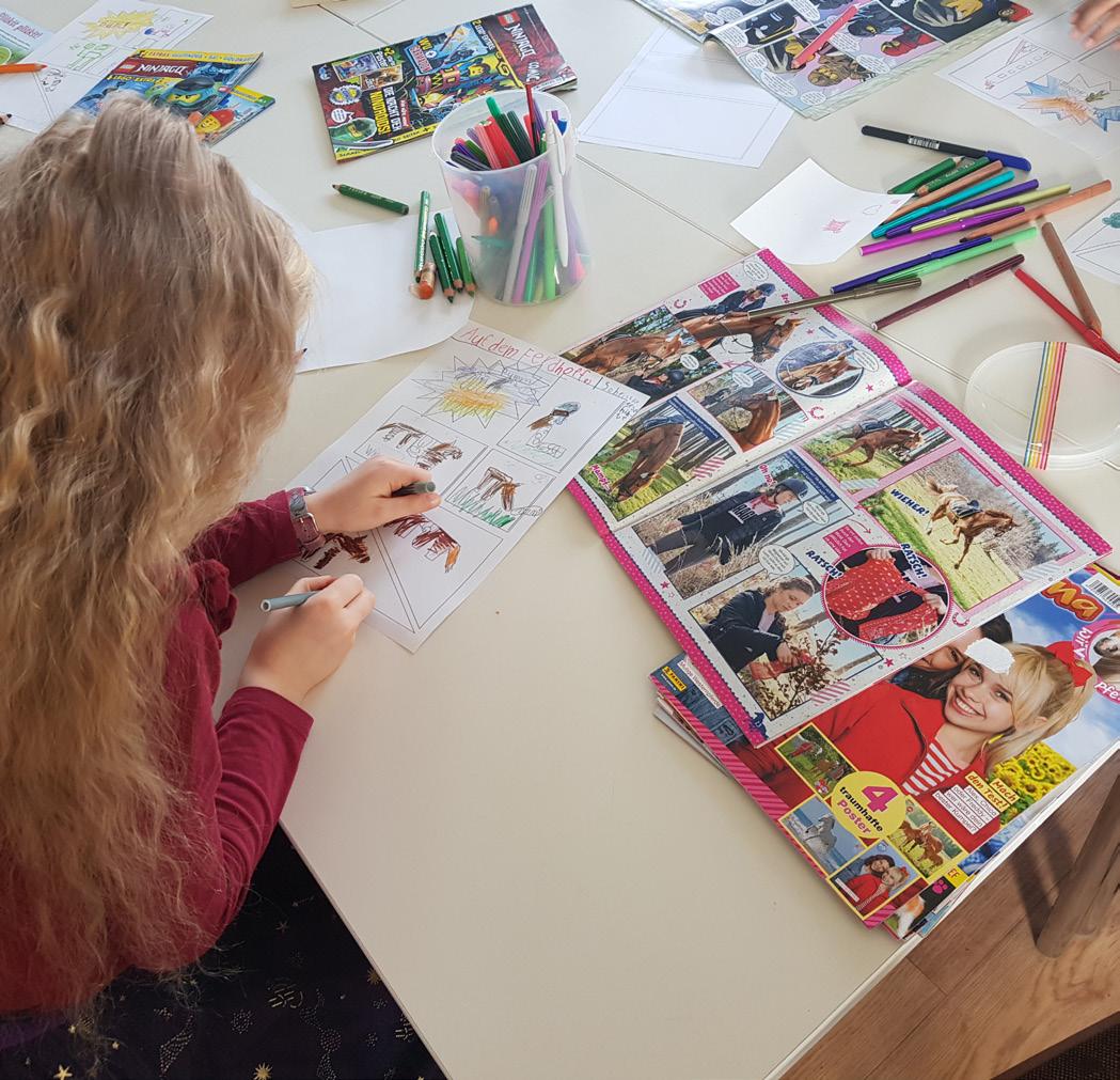 Pradinukų mokytoja Sigita norinčius vaikus pakvietė pačius kurti komiksus. Smagu, kad tokių kūrėjų buvo daug daugiau, nei tikėjomės. Kai kas spėjo ir komiksą nupiešti, ir dar žurnalais pasikeisti.